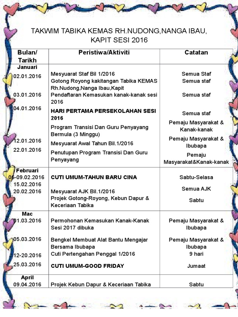 Takwim Tabika Kemas Taman Perumahan Polis Kapit Sesi 2016 Pdf